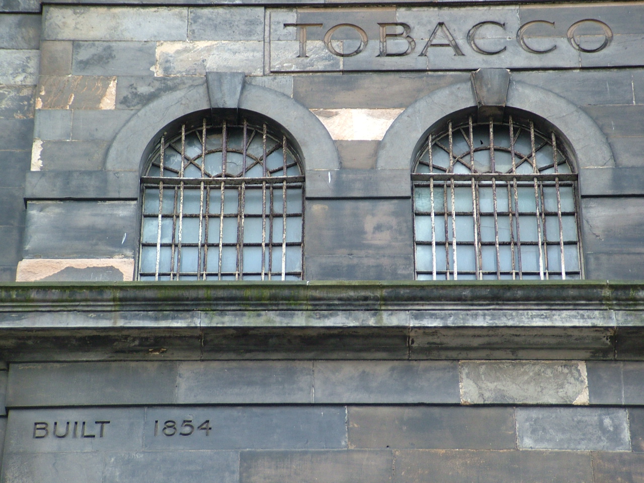 Warehousing technologies were developed in Glasgow as part of the Transatlantic Slave Trade. Tobacco (and the habit of smoking) was shipped out from the Clyde and across the world. This tobacco warehouse near the Clydeside was built only two decades after the Slavery Abolition Act was passed.