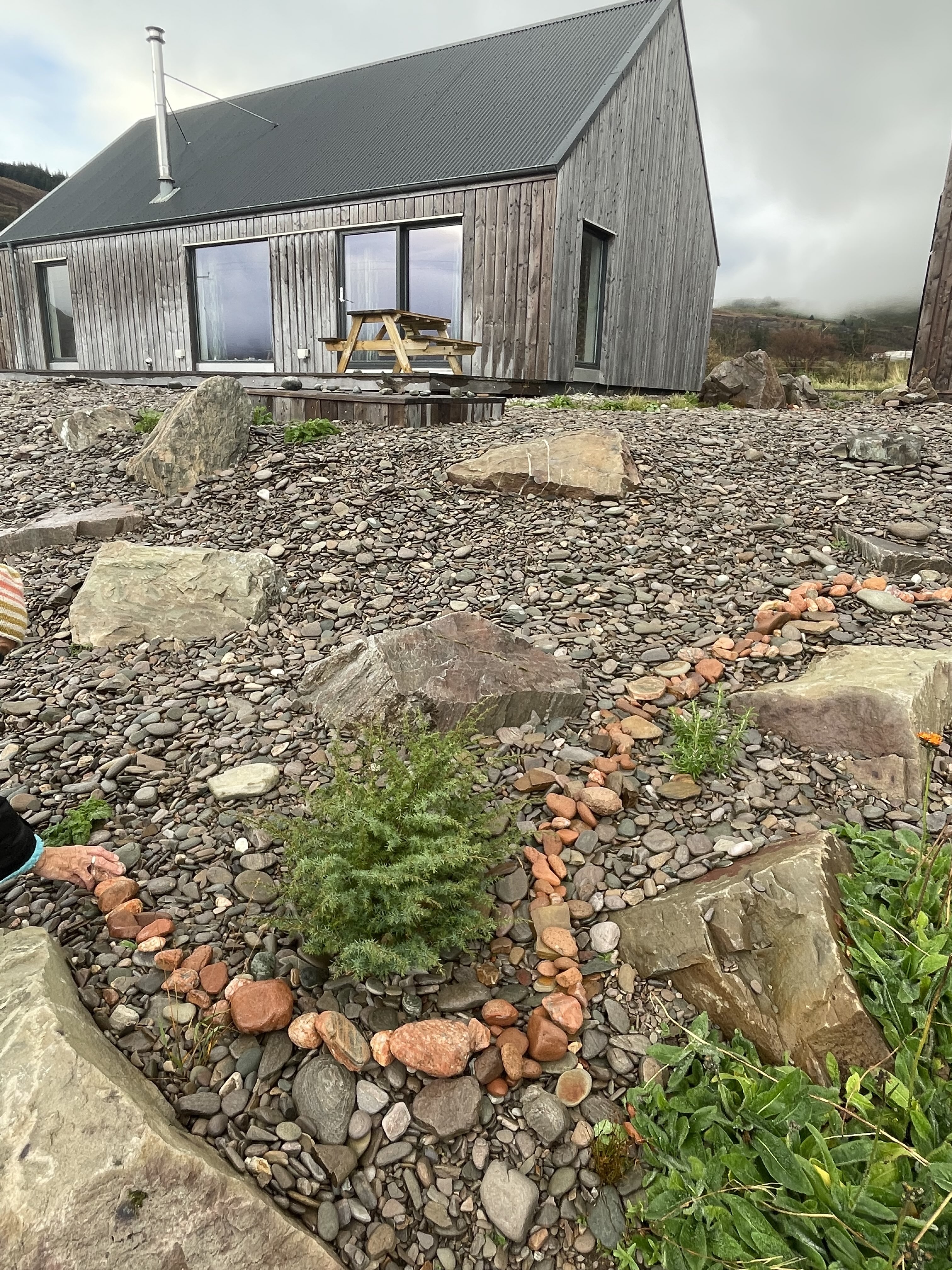 It's Friday, the 10th of October, and I'm writing from rain swept, rainbow garlanded Glenelg. I've been here for a few days, catching my breath, writing, walking and planning for my research Scholarship next spring. I feel lucky to have the opportunity to spend time in a remarkable house, filled with a spirit of kindness and generosity. Everything here is redolent of care; from the titles of the books that are distributed around the space, to the pebbles and stones that make up the beautifully planted, landscaped garden and that can be found placed throughout the house. All in harmony with the ever changing, jaw dropping vistas of hills, sea sand and machair that surrounds us. Everything is pleasing to the eye, soothes the soul and is evidence of how compassion sits deep in the core of this place. The bothy, Turadh (@this_is_turadh) is open to (susidised) rent for those who are working for the common good in Scotland.